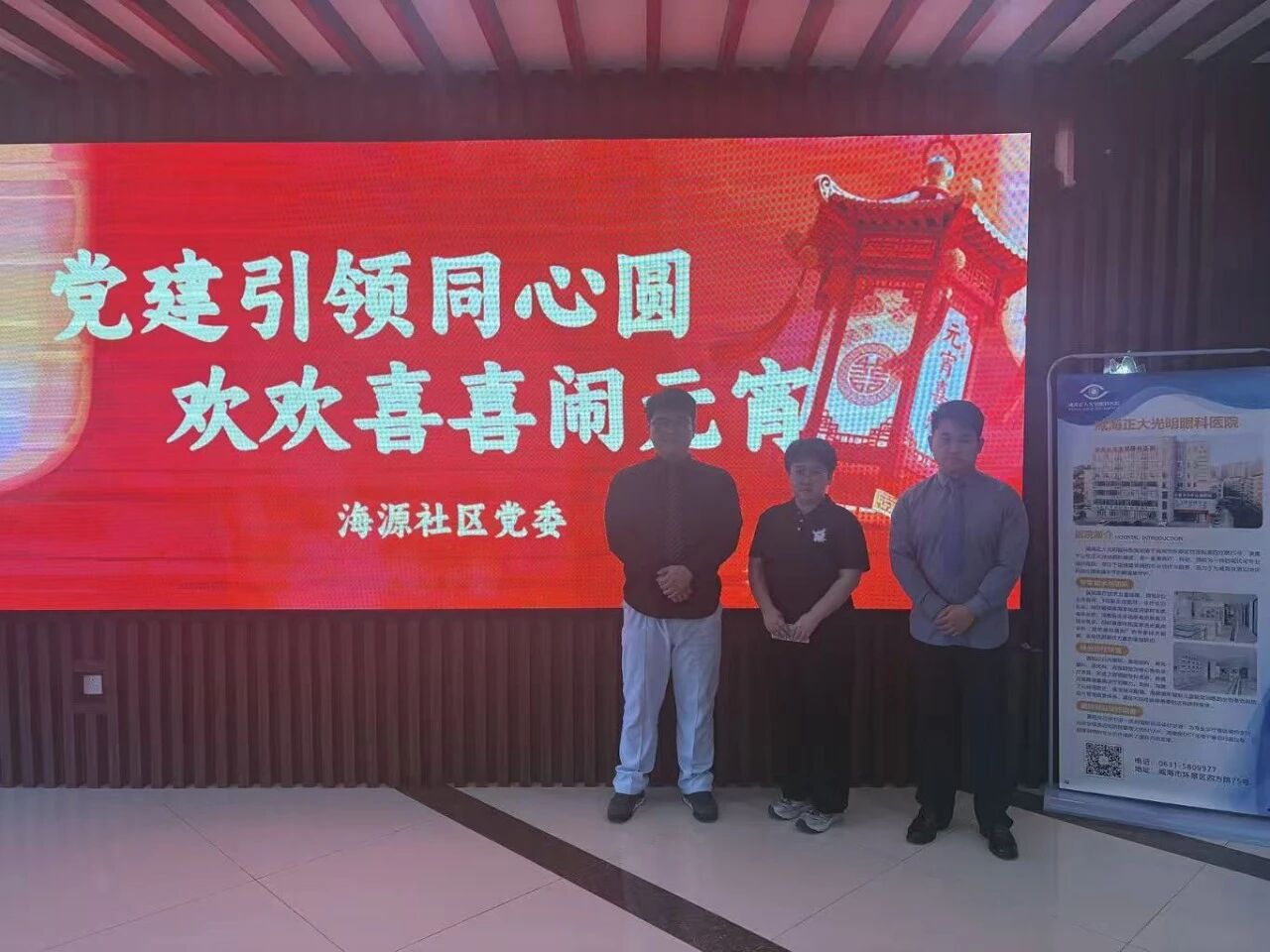 3月3日上午,威海正大光明眼科医院受邀参加海源社区“党建引领同心圆,欢欢喜喜闹元宵”党建主题活动,以实际行动践行公益责任,为社区居民送上专属眼健康关怀,共庆团圆佳节。